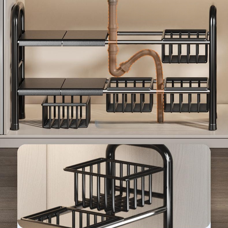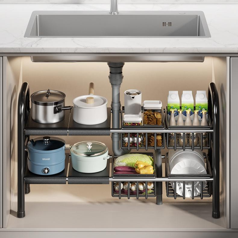 廚房櫥櫃伸縮多功能收納置物架碗碟鍋具架